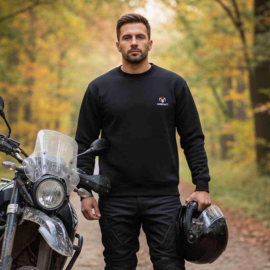 RIDERACT® Motorcycle Sweat Shirt is reinforced with aramid fiber lining & breathable mesh inner offering enhanced protection against tears and abrasions in an unfortunate event on the road. The outer shell of this Riding shirt is made from heavy duty fleece yet lighter in weight for This versatile Motorcycle Sweat shirt is perfect for summer rides on its own or can be worn under your motorcycle jacket for added warmth and protection during colder seasons.