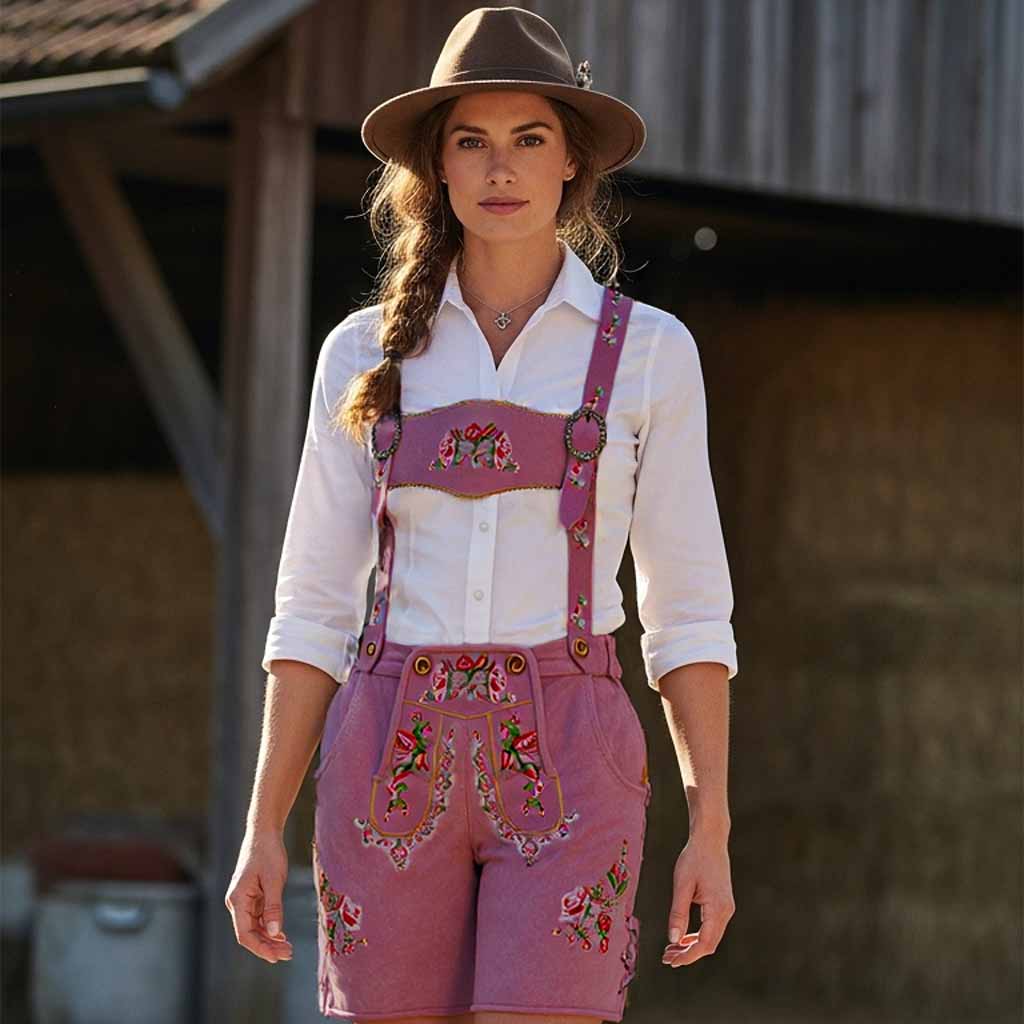 Womens Lederhosen Suede Leather Short Rose Pink Oktoberfest Costume