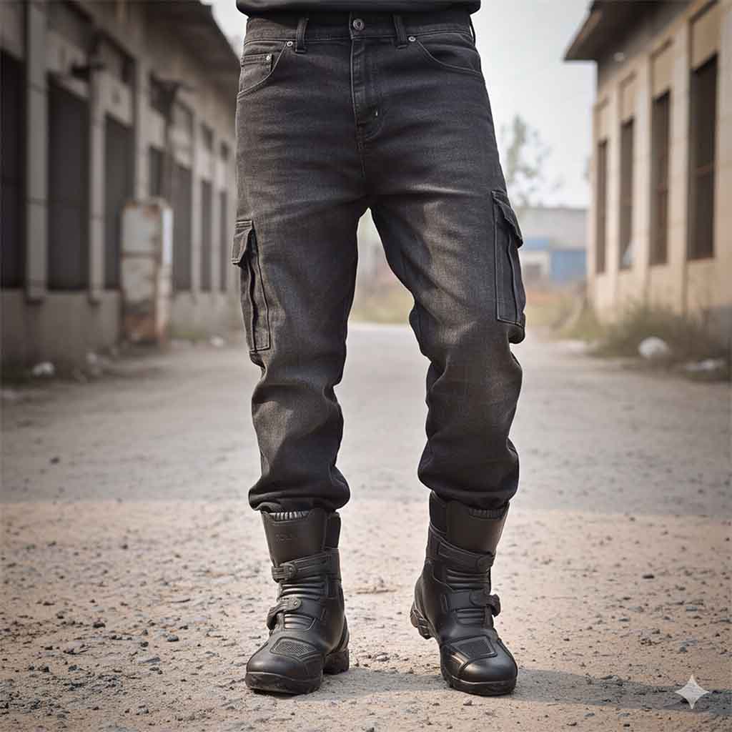 RIDERACT® Mens Motorcycle Cargo Jeans in black are built for avid riders, providing excellent protection without sacrificing style. Made from durable, high-strength denim, these Motorbike cargo pants feature a comfortable fit and are reinforced with aramid fiber for added safety on every ride. Designed with spacious cargo pockets, these Motorcycle Cargo pants offer convenient storage for your essentials, making them ideal for street riding, touring, and everyday casual wear.