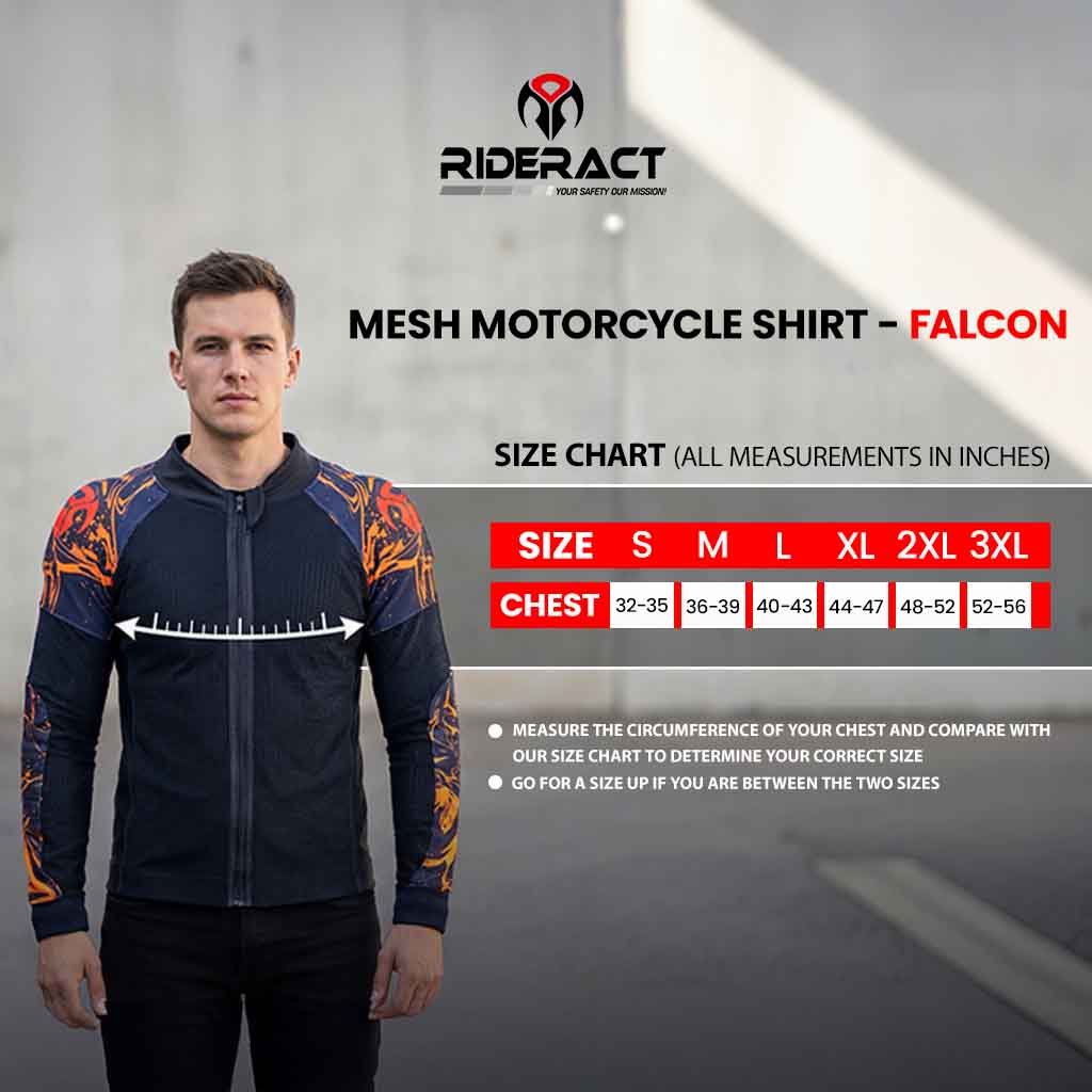 RIDERACT® Men’s Mesh Motorcycle Shirt Falcon is designed for riders who want maximum airflow without compromising protection. Constructed from high-strength breathable mesh with an integrated CE Level 2 impact protection system, this motorcycle mesh shirt is ideal for daily riding, touring, and summer adventures.