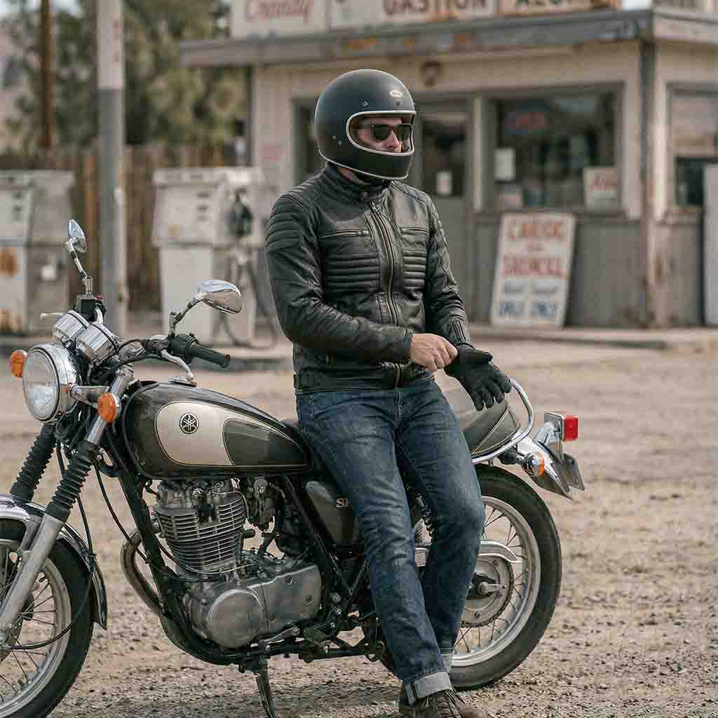 Upgrade your ride with the RIDERACT® Mens Motorbike Jacket – a premium Leather Biker Jacket designed for comfort, protection & timeless style.