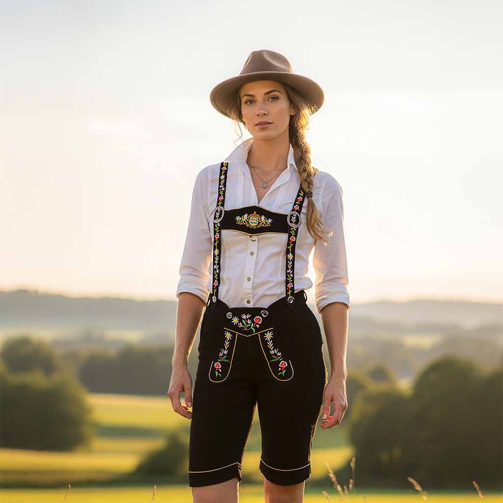 Women's Oktoberfest Costumes | Suede Leather Lederhosen Short Black