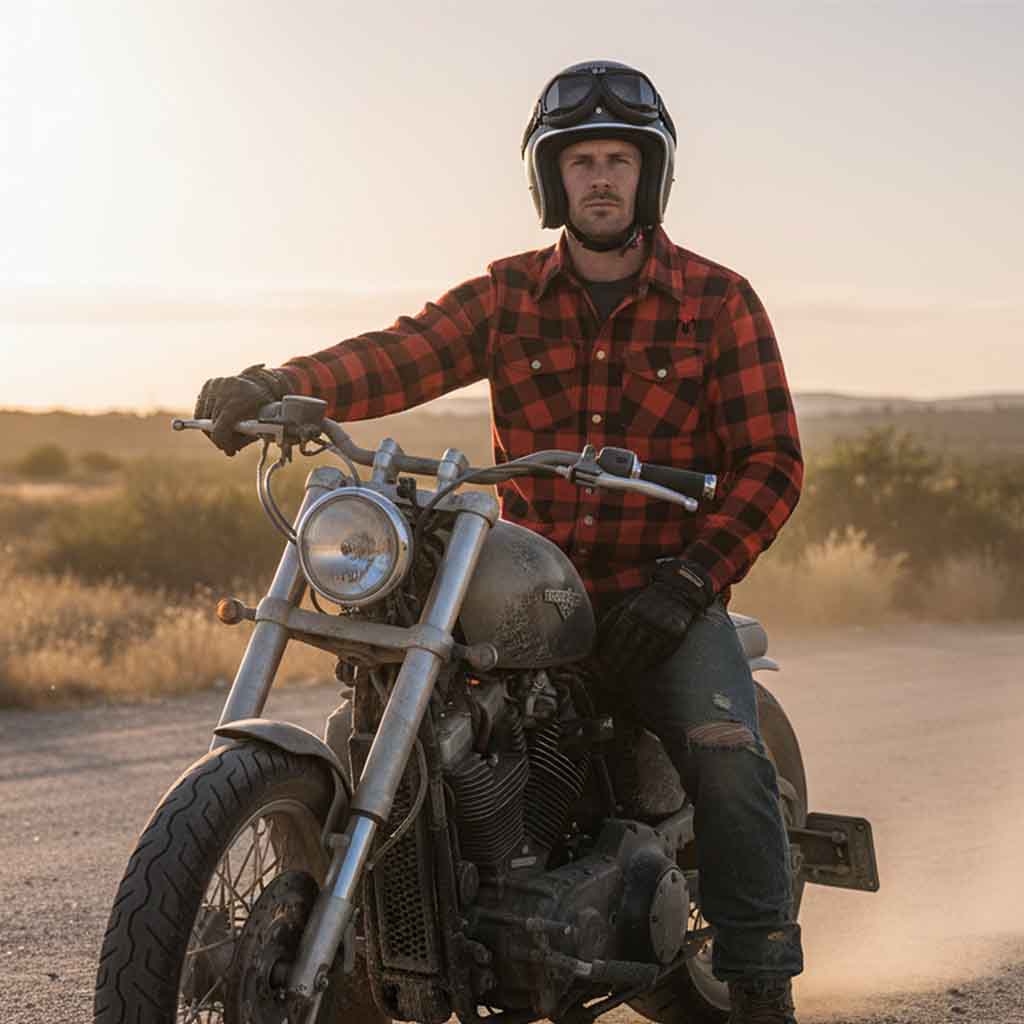 RIDERACT® Men’s Flannel Motorcycle shirt for bikers is specially designed for motorbike riders. The bold red and black color scheme in the checked motorbike shirt adds a fashionable touch, ensuring you stand out in any riding outfit. This unique Motorbike Flannel shirt combination provides both style and safety making it the perfect choice for bikers who want to look great while staying protected on the road.