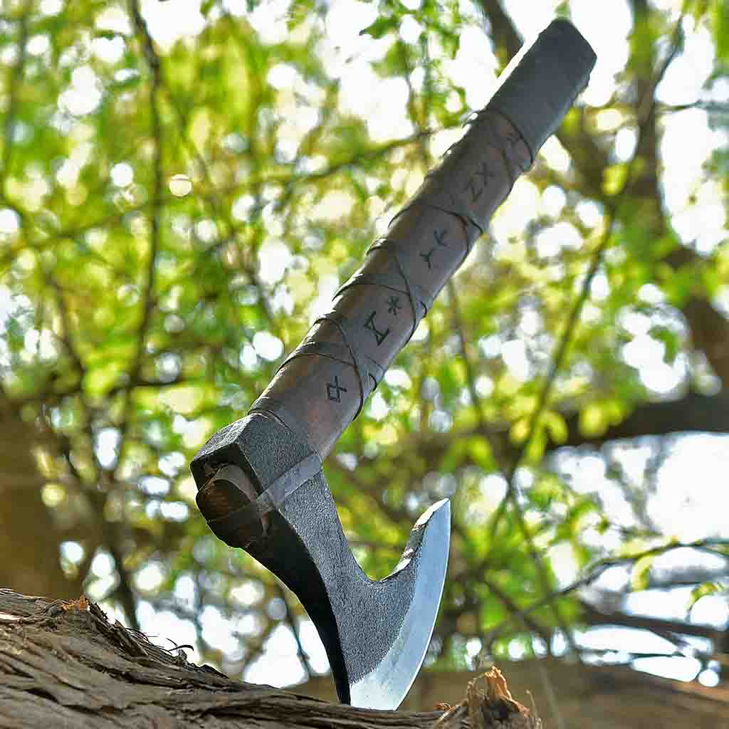 - Razor-Sharp High Carbon Steel – Hand-forged and tempered for unmatched edge retention, making it ideal for chopping, splitting, or Viking reenactments.