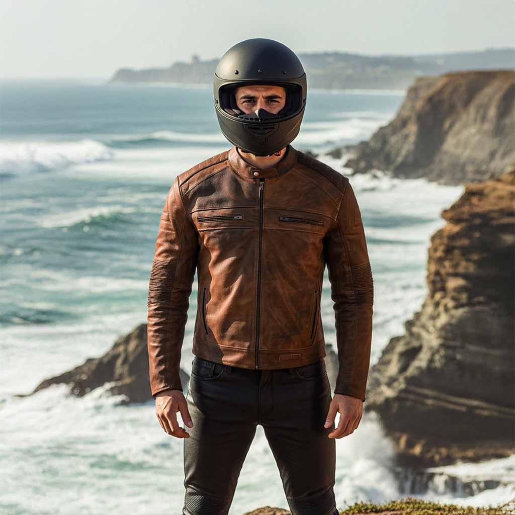 RIDERACT™ Mens Leather Motorcycle Jacket Cafe Racer is meticulously crafted from premium cowhide leather in a unique olive brown shade. This leather biker jacket offers the perfect blend of toughness and comfort, ensuring durability on the road. Designed for style and performance, This Motorbike Leather Jacket provides all-season protection, making it a versatile choice for riders who value safety and a classic look.