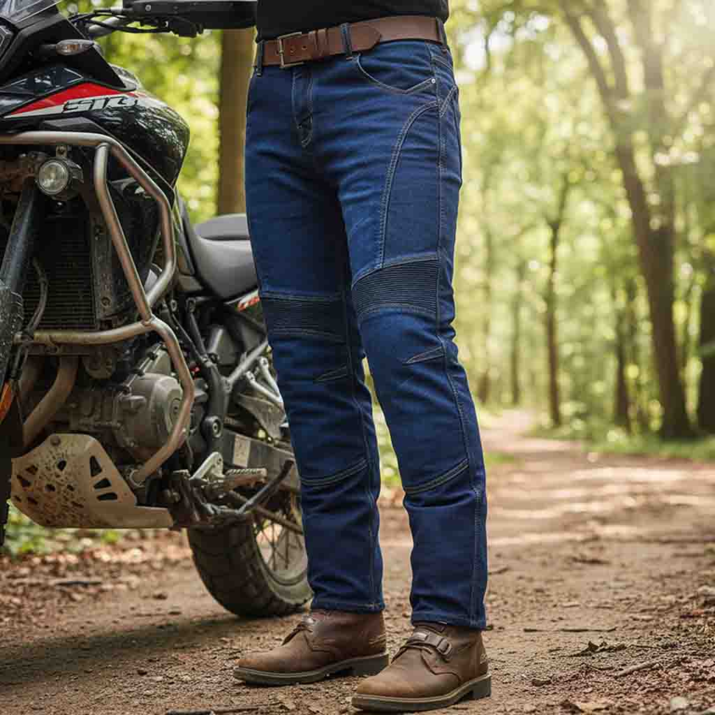 RIDERACT® Mens motorcycle jeans are designed for casual street riding or touring. These biker jeans are crafted from heavy duty stretch denim and reinforced with aramid fiber lining in key impact areas, ensuring maximum durability and protection. Our Motorbike Jeans come with removable CE armor for the knees and hips you can ride confidently knowing you’re protected when you hit the road.