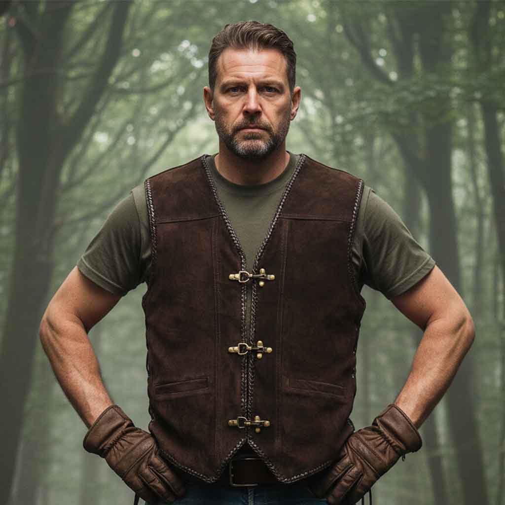 RIDERACT® Mens Leather Biker Vest is crafted from premium cowhide suede leather, delivering a perfect balance of rugged style and everyday comfort. This classic Leather Vest in rich brown is lightweight and versatile—ideal for layering over your shirt or jacket across all seasons. Whether you're cruising through the city or heading to a rally, this  Motorcycle vest adds timeless character to your ride.